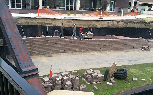 So I walk past the collapsed retaining wall tonight and see they are putting it back up in lightning speed (before the news media gets wind of it) and they are using THE SAME block as before, but it looks like a different backfill. It’s like they are building the Great Wall of China out of leggos. It’s pretty obvious this stone is too lightweight and small to be stacked this high, but hey, I’m no landscaping engineer.