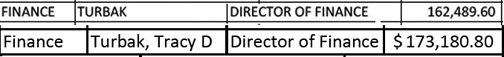 His salary times 1.5%, what they are offering the others in the city, would be a $2437 increase in pay, not 11K. How did the poor, destitute city which is in such dire financial straits find the money for this!!? Furthermore, if the city is in such dire financial straits with no scraps to spare, why are they rewarding the Finance Director!?! What a joke.
