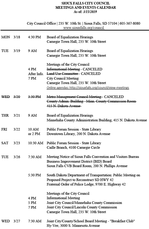Item #59, Resolution, Open up the Events Center Campus Book Club meetings to the public. Whether or not the Book Club decided to open up the meetings now is a moot point. It is NOT their decision to make. The council should pass this resolution and move on. Open Government should be the goal of any government body, whether that is in Bumphuck, SD or Sioux Falls. There is NEVER a good argument to keep the people’s business is closed. NEVER.