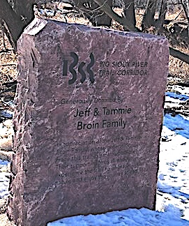 The new bike trail spur from Falls Park to Bahnson has basically been open, but they don’t plow it. They barely finished it before winter set in, so there really hasn’t been an unveiling but it is completed. Before the project was even finished this Fall this rock showed up. I found it funny that they had to make sure the sponsor rock was there before anything else. Pathetic.