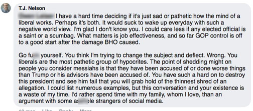 I bring this up because I found a post from May 2018 from Poops’ former deputy COS, TJ Nelson on FB;